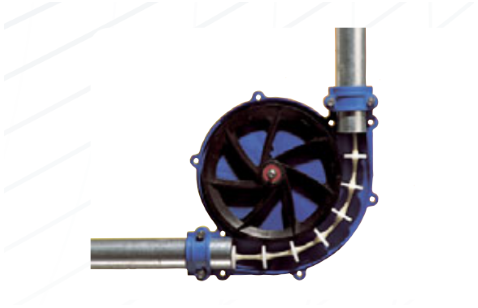 Skiold Transpork operates with pipes arranged in a circuit. Inside the pipe runs a cable fitted with evenly spaced discs that move material at capacities from 300 to 2,100 kg per hour — a significant increase compared with traditional dry feeding systems.
